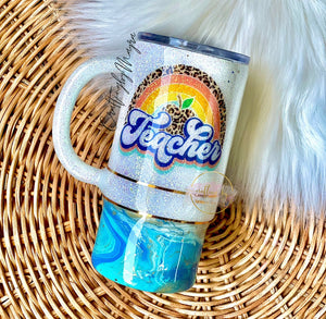RTS {Rainbow Teacher Leopard Blue/White Hydro-Dipped Tumbler}