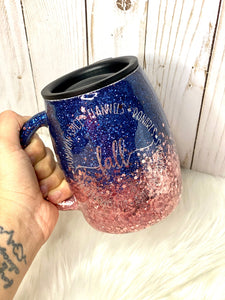 Each tumbler is handmade, so no cup is EXACTLY the same! You will have a one-of-a-kind tumbler that sparkles just right! Due to the handmade nature of these tumblers, minor imperfections are sometimes unavoidable (specs of glitter). I make every effort to ensure that your cup is perfect before presenting it to you. The item you see pictured is to visualize what this item will look like once it is finished. Since all items are handmade by me, and due to the custom nature of the items, I will do my best to re-create the listed pictures. There is no guarantee that they will look the exact same as pictured. Please reach out to me if you have any questions.