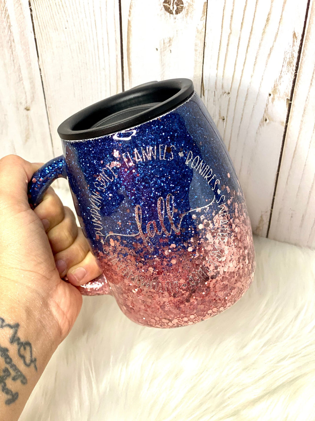 Every Tumbler is made with the highest quality Glitter, vinyl, and FDA Approved Food Safe Epoxy (Resin) that gives each tumbler high shine and a glass-like smoothness finish.