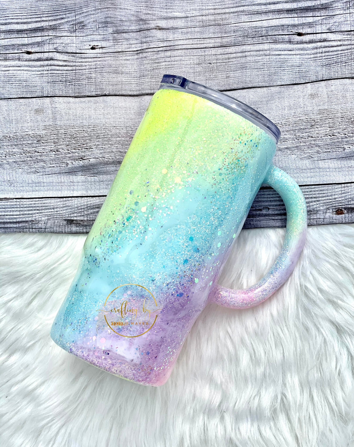 Each tumbler is handmade, so no cup is EXACTLY the same! You will have a one-of-a-kind tumbler that sparkles just right! Due to the handmade nature of these tumblers, minor imperfections are sometimes unavoidable (specs of glitter). I make every effort to ensure that your cup is perfect before presenting it to you. The item you see pictured is to visualize what this item will look like once it is finished. Since all items are handmade by me, and due to the custom nature of the items, I will do my best to re-create the listed pictures. There is no guarantee that they will look the exact same as pictured. Please reach out to me if you have any questions.