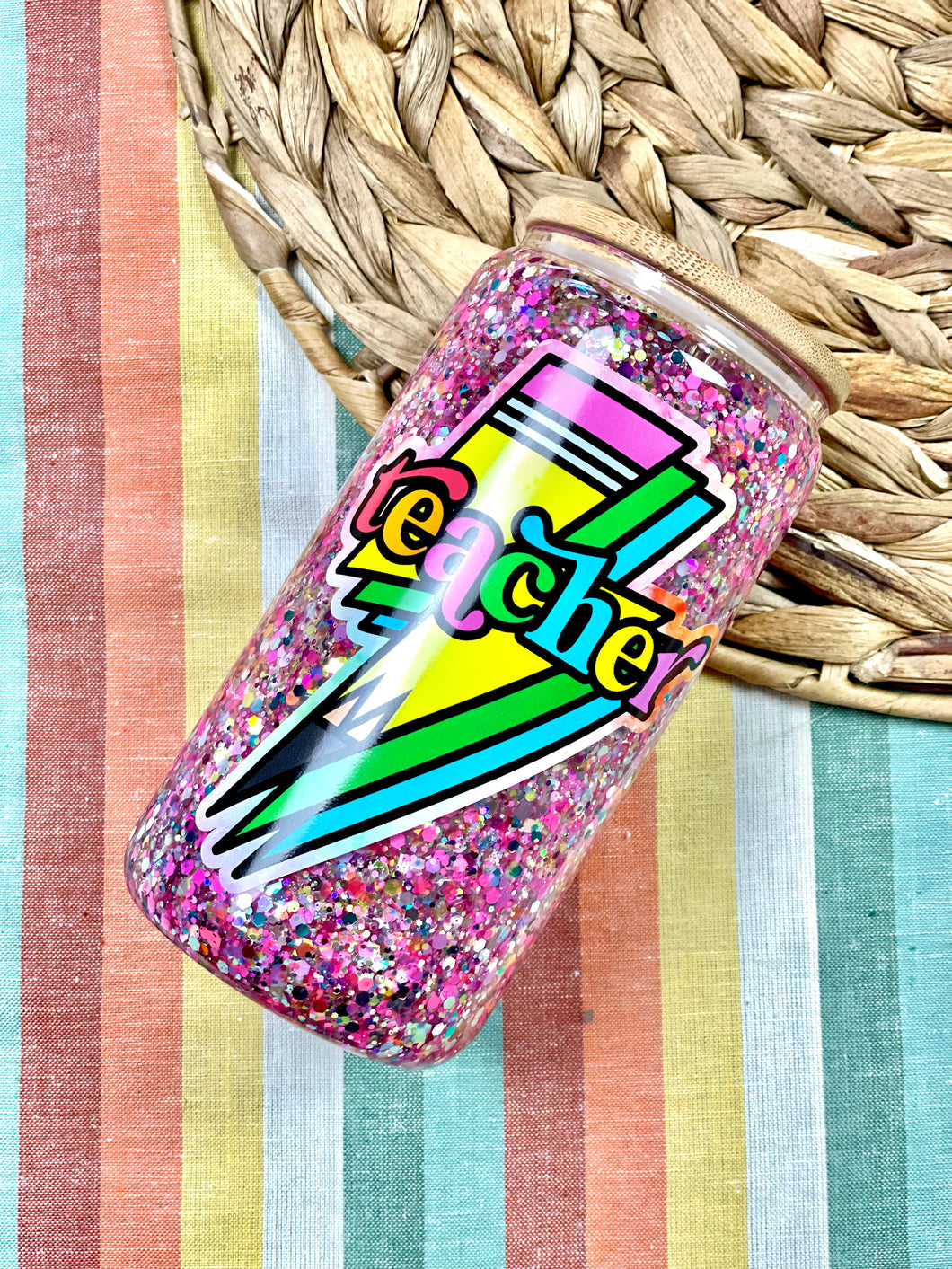 Teacher Bolt Retro Rainbow Snowglobe