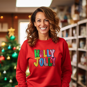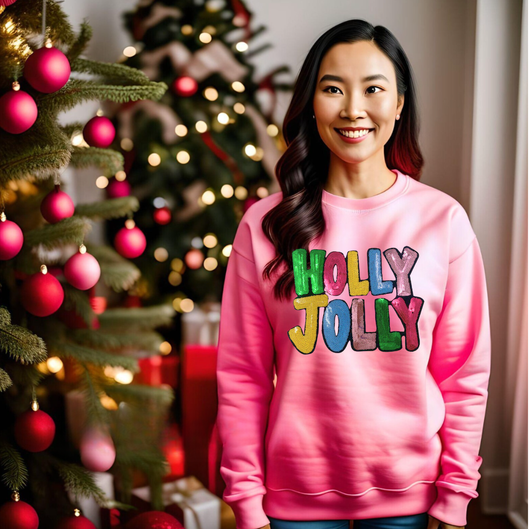 Introducing our Holly Jolly Sequin Patch Sweatshirt – the perfect blend of style and coziness to embrace the holiday season with flair!