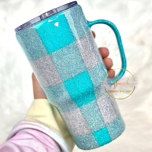 RTS {Silver And Light Blue Plaid} 20 oz Modern Curve W/Handle