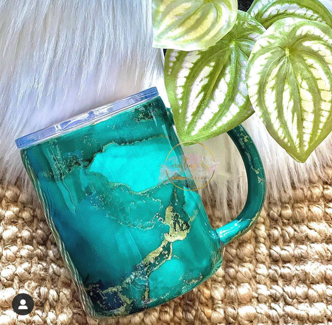 RTS {Teal/Gold Alcohol Ink Tumbler }